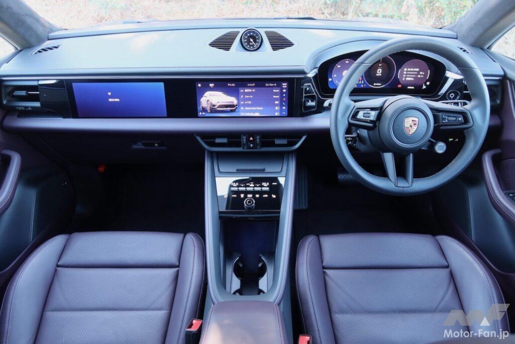 インテリアはまさしくポルシェ。インパネの最も高い位置にメータークラスターがあり、アッパーウイングとロワーウイングが明確に分かれた構成で、911やタイカンと同じ。ドライバーの目の前にある扇形かつ三次元曲面形状のメーターはフルデジタルで、サイズは12.6インチ。中央に10.9インチのタッチディスプレイが収まっている。オプションで、助手席側にも10.9インチディスプレイを設けることが可能だ。
