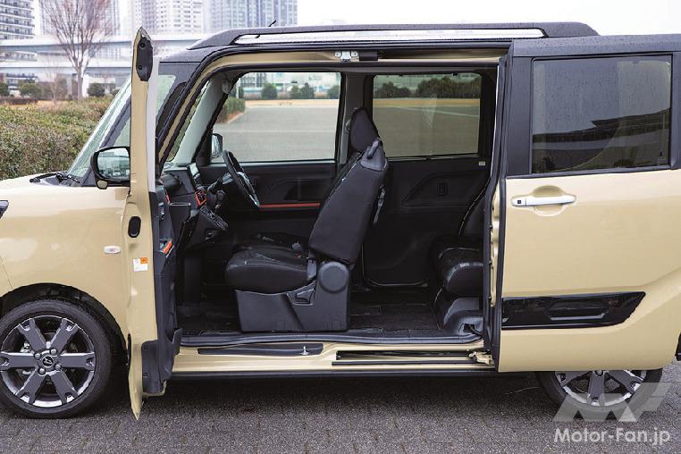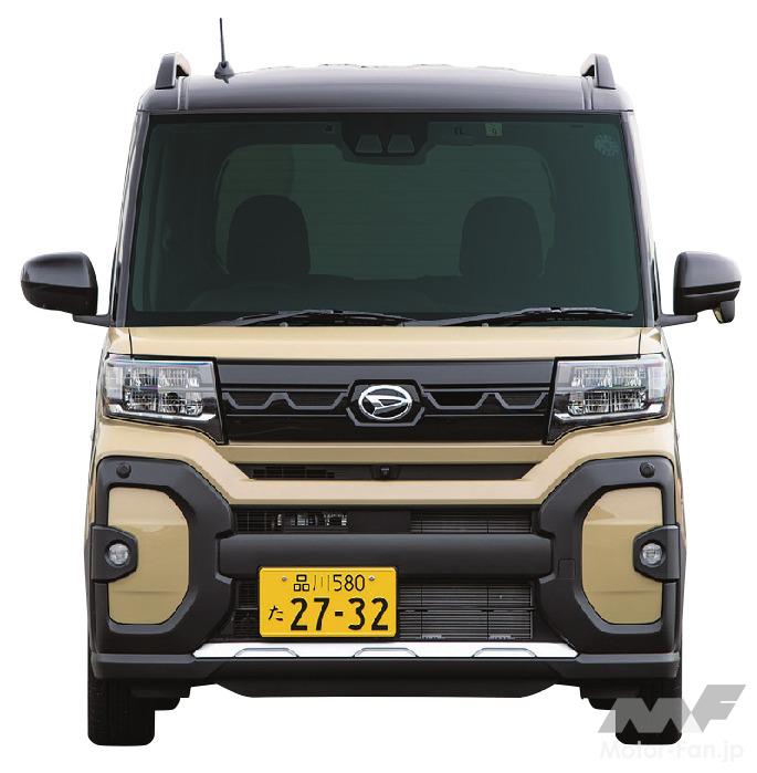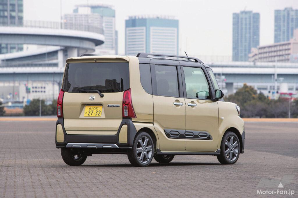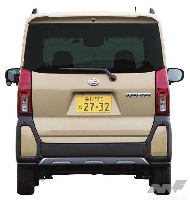 タントの派生モデルで、クロスオーバーSUVスタイルのファンクロス。言ってしまえば、つくりに関しては他社と同様の仕立てだ。つまりスズキ・スペーシアギアやホンダN-BOX JOY、そして三菱デリカミニなどと同様である。背が高くてスライドドアを組み合わせたスーパーハイトワゴンをベースに、無塗装の樹脂パーツを組み合わせてSUVらしいスタイルを演出。室内は撥水シートなどで機能性を高めてアウトドアとの親和性を高めている。