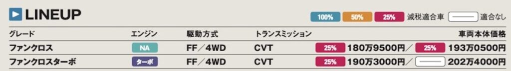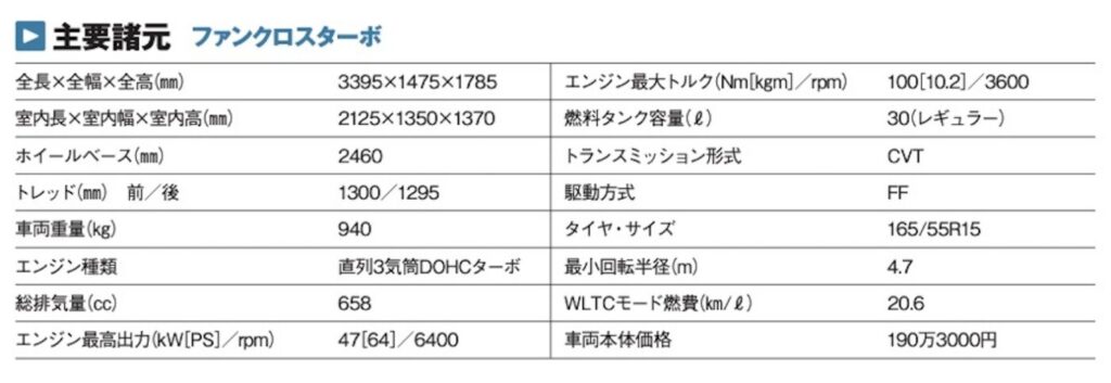 デリカミニ(の4WD車)と違って専用サスペンションによるリフトアップなどベース車両に対するメカニズムの変更はない。でも、それはデリカミニが異例なだけ。走りに関して変更がないファンクロス方式が世間の常識と言っていいだろう。そんなファンクロスだが、バイヤーズガイド視点で見るとライバルに対して大きなアドバンテージが存在。それは車両価格が安いことである。例えばこのジャンルの先駆者であるスペーシアギアの最も安価な仕様は195万2500円でN-BOXJOYは184万4700円、デリカミニは183万7000円となっている。しかし、ファンクロスは177万6500円から。唯一の、170万円台スタートなのだ。