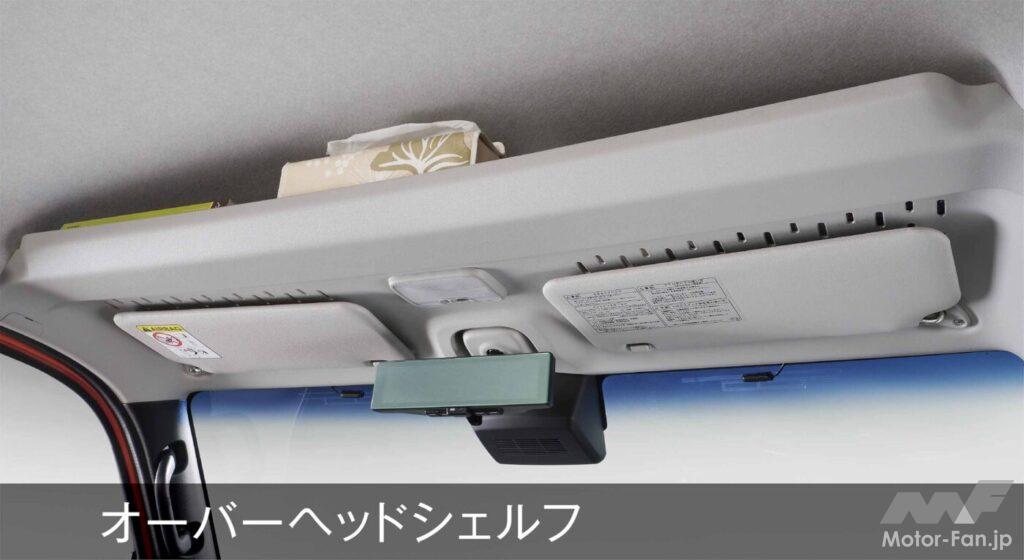 これらに加えて、ティッシュボックスや地図を入れるのに重宝するオーバーヘッドシェルフも装備されている。さらにアトレーには、荷室サイドにポケットと12Vソケットが配されている。ちなみにアトレーRSには助手席前に12VとUSB電源が2口装備されるが、個人的には現代のガジェットを考えれば後部もUSBでいいのではないかと思う。車中泊時には、USBの方が圧倒的に便利だ。