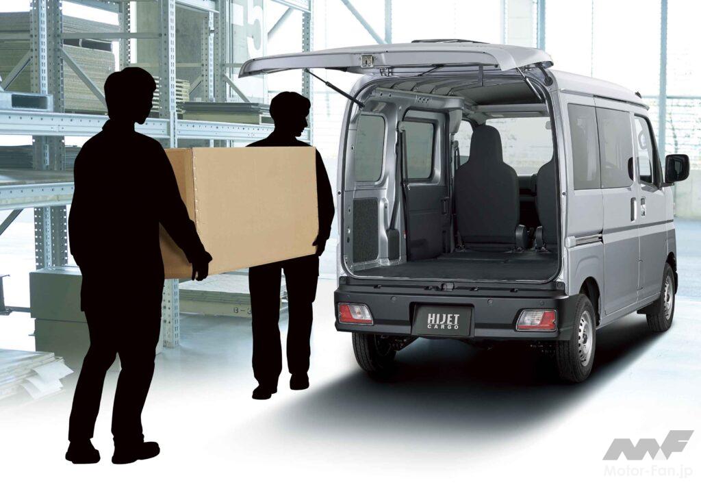 注目すべきは、アトレーも後部座席が床下に収納ができ、完全フラットな荷室になったこと。後部座席のクッションが薄くなり、リクライニング機構が廃されたが、ほとんどのユーザーが日常的に2人乗車で使うことを考えれば、荷室の使い勝手が優先された方が嬉しいはずだ。この変更に伴い、アトレーも4ナンバー化。自動車税が安くなるというメリットも生まれた。