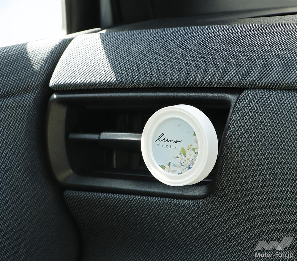 ニーズに合わせて選べるよう5タイプのラインアップを用意。コンパクトサイズでドリンクホルダーやダッシュボードに設置しやすい『G899 ルーノ ゲル ジャスミン(持続期間約30日)』、香り立ちの良さが特徴でドリンクホルダーやダッシュボードに置ける『L395 ルーノ リキッド ジャスミン(持続期間約30日)』、車内に香りを拡散させられるエアコンルーバー取り付けタイプの『H1813 ルーノ エア ジャスミン(持続期間約30日)』、オシャレに吊り下げて使えるペーパー状で3枚入りの『H1823 ルーノ ハンギング ジャスミン(持続期間1枚当たり約10日)』、長もちする固形ゲルタイプでシート下などに置ける『G2111 ルーノ ブースター ジャスミン(持続期間約45日)』がある。