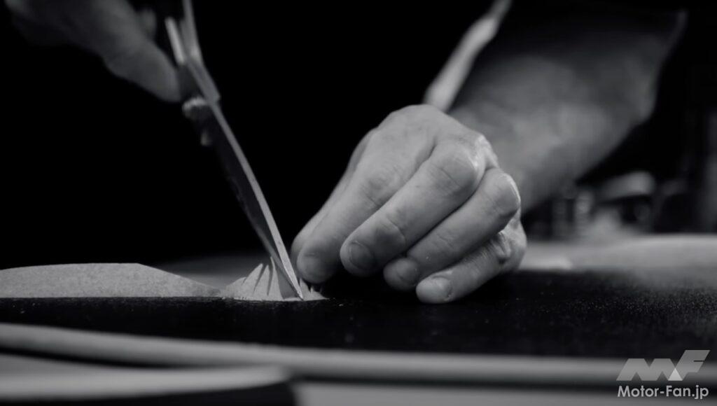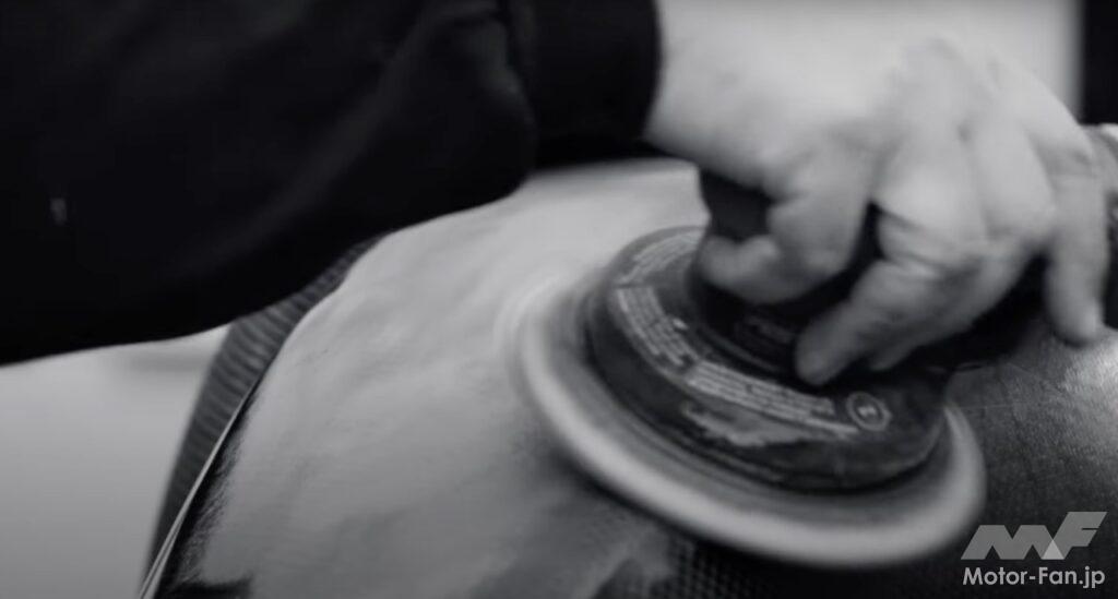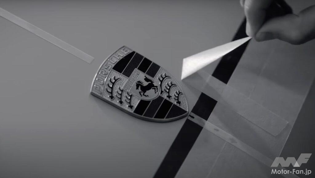 また、カーボンファイバー製のボディワークが研磨され、新たな塗装が施されている様子を見ることができる。また、他の職人たちが、まるで新品のようなアルカンターラ張りのインテリアを組み立てている様子も見られる。仕上げとして、ノーズにはレースカーのステッカーではなく、本物のポルシェバッジが取り付けられている。