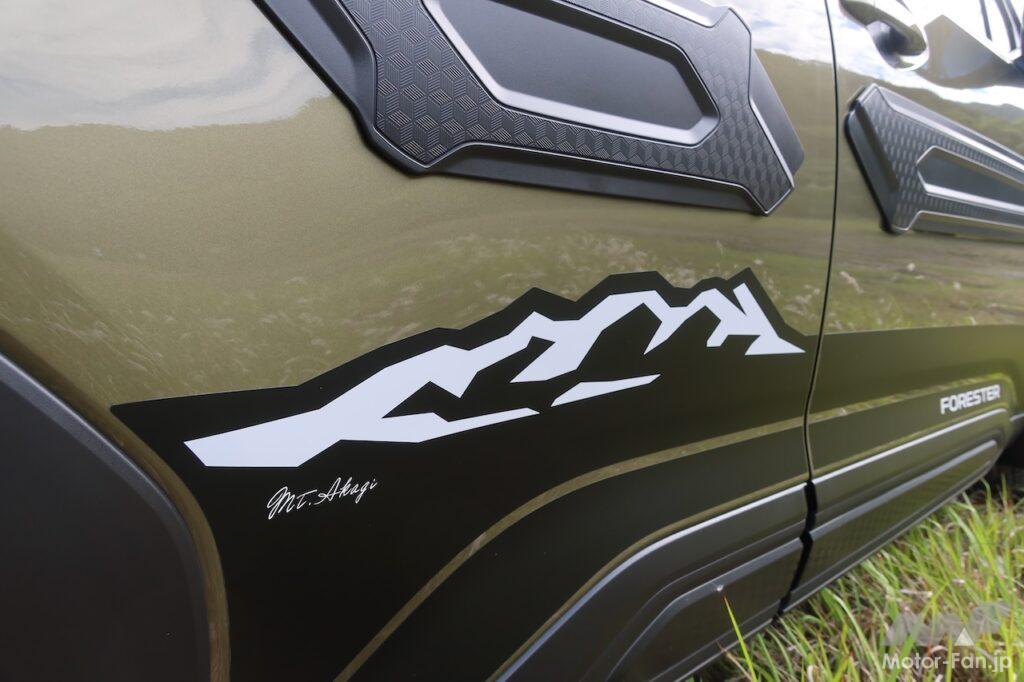 新型フォレスターに設定されたアクセサリーからは、使う人の立場に立った「思いやり」が感じられる。ちなみに、ボディサイドに貼られた山デカールは、大雪山、磐梯山、筑波山、赤城山、富士山(右は山梨側、左は静岡側)、立山、伊吹山、大山、阿蘇山、デナリ山の10名山を設定。撮影車はスバルのお膝元ともいえる赤城山が貼られていた。