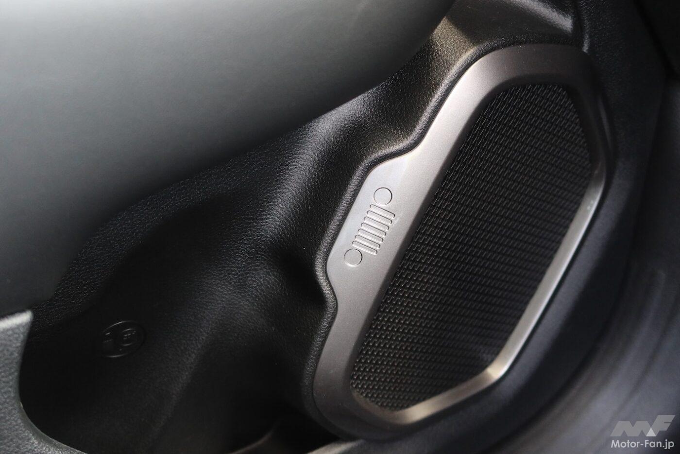 マイルドハイブリッド車の設定にともない、エクステリアとインテリアに手が加えられた。エクステリアでは、ジープのアイデンティティである7スロットグリルをグロスブラックに変更。ドアミラーはグロスブラックからブラックに、ドアハンドルはボディ同色からブラックに変更されている。結果、渋めの引き締まった意匠になった。
