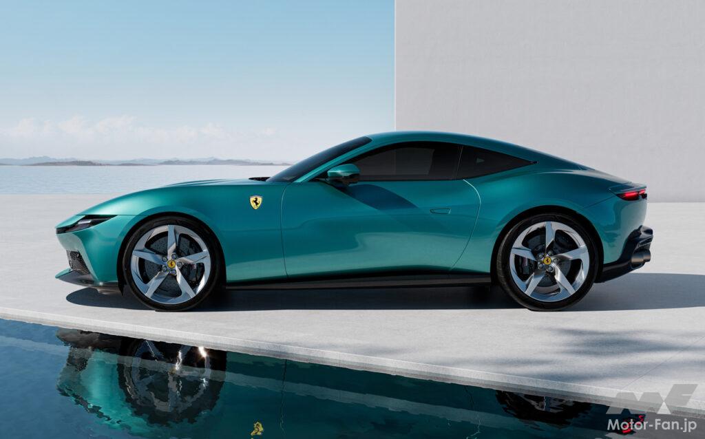 最高出力640ps/7500rpm、最大トルク760Nm/3000-5750rpmを発するV8ツインターボエンジンは「F154」の進化版。最高回転数は7600rpmだ。このエンジンは8速DCTと組み合わされ、後輪を駆動する。車両の乾燥重量は1470kgだから、パワーウエイトレシオはクラストップレベルの2.29kg/psをマークする。加速性能は3.3秒の0-100km/h加速、9.0秒の0-200km/h加速を実現。最高速は320km/hに届く。ちなみに0-100km/h加速はローマより0.1秒速い。