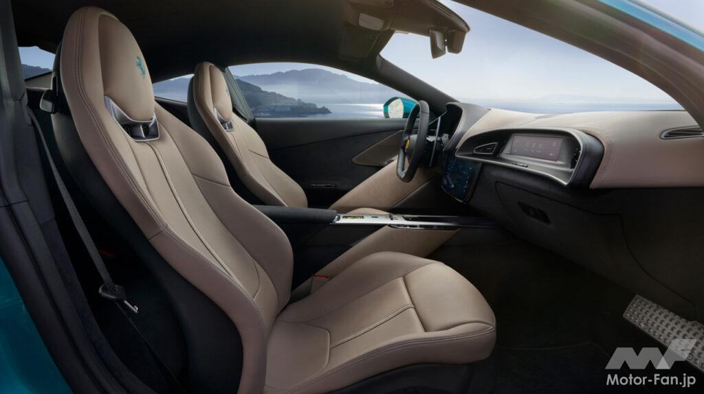 ディアルコックピットレイアウトが採用されたキャビンでは、ステアリングホイールに物理ボタンを装備し、アイコニックなスタートボタンも復活。一体化したセンターディスプレイと人間工学に基づく操作系により、ダイナミックなドライビング中でも車両との直感的な意思疎通が可能だ。カーボンファイバー素材の多用と、アクセントとなるステッチングがエクスクルーシブな印象をさりげなく高めている。+2による後席は新型アマルフィの実用性を示すもので、子ども連れの旅行にも行ける。