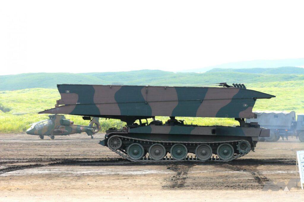 陸上自衛隊にも「91式戦車橋」がある。90式戦車(重量約50トン)を通行させる目的で開発された車両だ。90式戦車のほとんどは北海道の部隊に配備されている。90式戦車は冷戦時代に主に旧ソ連の脅威に備えた装備だから北海道に重点配備された。91式戦車橋もこれに合わせ、教育用車両などを除くほとんどが北方の施設科部隊に配備されている。