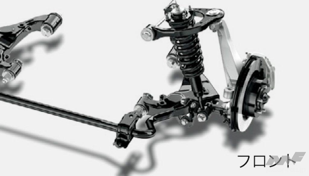 GA-Fプラットフォームの採用で、フロントのハイマウント・ダブルウィッシュボーン式、リヤのトレーリングリンク車軸式のサスペンションも新開発された。路面状況や運転操作に応じ、ショックアブソーバーの減衰力を4輪独立で制御する AVS(Adaptive Variable Suspension)には、新たにリニアソレノイドタイプを採用。 操縦安定性と乗り心地の両立を図った(AVS はZX、GR SPORTに標準装備)。