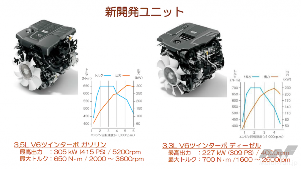 レクサスLS譲りの3.5ℓV6ツインターボと新開発ディーゼルエンジン