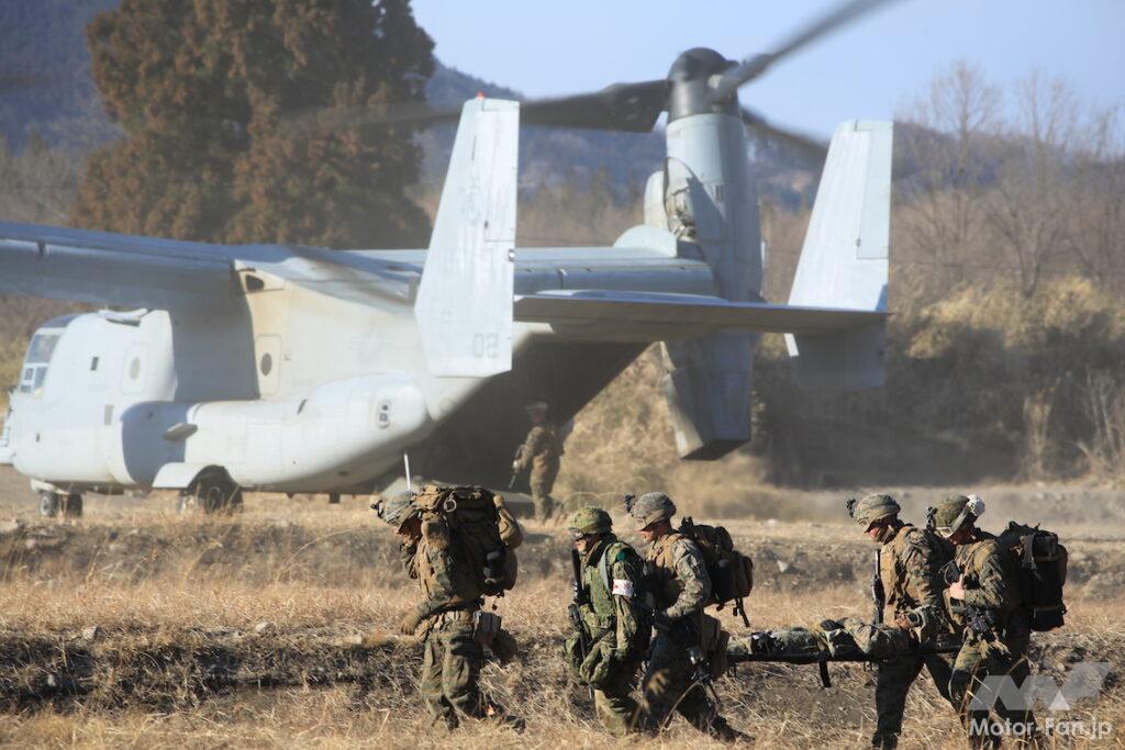 とはいえ占拠地にまつわる攻防や奪回がそう易々と運ぶわけがないのは我々にも想像がつくこと。同時に、オスプレイのヘリ同様の飛行特性や高速性、航続距離の長さは、離島地域にあって光るものだ。加えてティルトローターの能力は離島地域にあっては特に人員輸送や救難活動、急患や傷病者の航空輸送などの活用も十分期待できる。