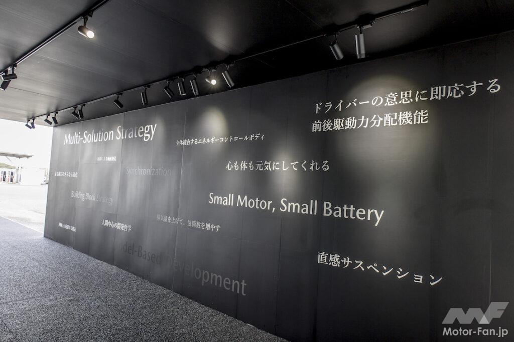中井さん:CX-5にお乗りのお客さまが次に選んでいただけるクルマが、どうしてもビジネスとして必要な状況になっています。今の時代、そのサイズでもっとも効果的なものはなにか?と考えたときに、パワートレーンはこういうマルチドライブシステムといういいますか…電動化は必要ですよね、と。まずはエネルギーを少量化しようと思ったら回生には使わないといけない。もうひとつはEVをお望みの方もいらっしゃるのでPHEVも必要。ただ、それを効率よく開発しようと思ったら、どういうものがいいのか。