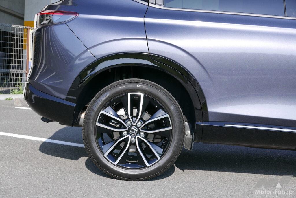 ホンダ・ヴェゼル e:HEV Z(FF) 全長×全幅×全高:4330mm×1790mm×1590mm ホイールベース:2610mm 車重:1380kg サスペンション:Fマクファーソン式 Rトーションビームアクスル式 駆動方式:FF エンジン形式:直列4気筒DOHC+e:HEV(i-MMD) エンジン型式:LEC 排気量:1496cc ボア×ストローク:73.0mm×89.4mm 圧縮比:13.5 最高出力:106ps(78kW)/6000-6400rpm 最大トルク:127Nm/4500-5000rpm 過給機:× 燃料供給:PFI 使用燃料:レギュラー フロントモーター:H5型交流同期モーター 最高出力:131ps(96kW)/4000-8000rpm 最大トルク:253Nm/0-3500rpm バッテリー:リチウムイオン電池(60セル) 燃料タンク容量:40ℓ 車両価格:293万7000円