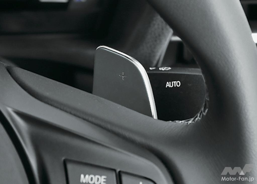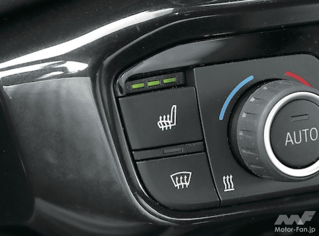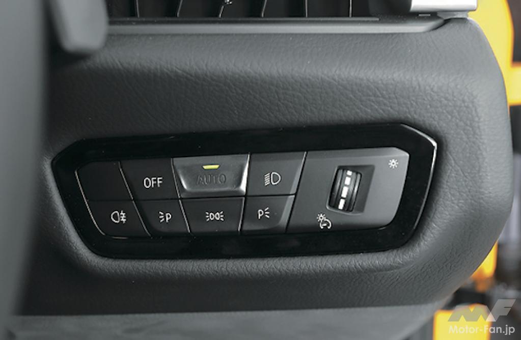 右側のレバーはワイパースイッチ。左側はウインカーのほかにドライブ情報の切り替え&リセット、そしてオートマチックハイビームのオン/オフも備わる。