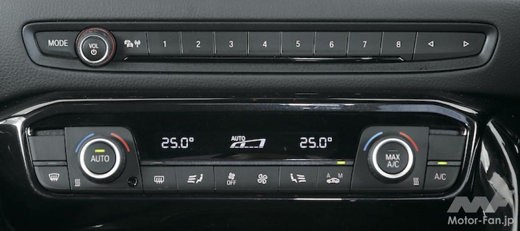 ステアリングスイッチは右がオーディオ関係と音声入力、そしてハンズフリー通話。左はクルーズコントロール(全車速追従機能付き)の操作スイッチになっている。