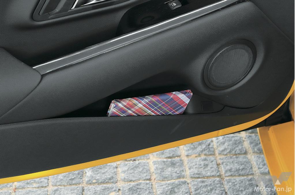 低い着座位置ゆえに、乗り込む際は沈み込む感覚が強い。加えて極太のサイドシルのため足先の軌跡も大きくなるが、そのサイドシルに片手をついて(運転席ではさらに左手でハンドルを持ち)体重を支えるのがスマートに乗り降りするコツだ。