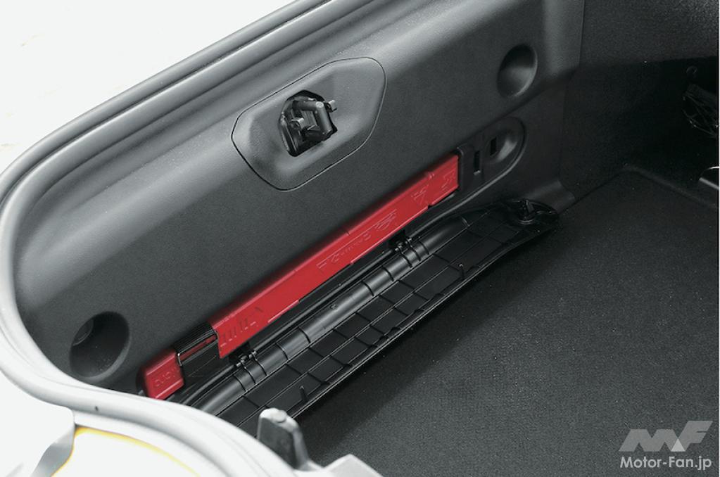 広さのイメージは「2人の小旅行」。機内持ち込みサイズのケースならゆったりふたつ、大型スーツケースでも1個は積める。前方の床が高くなっている部分(左右サスタワー間)を活用すればゴルフバッグも収まる。