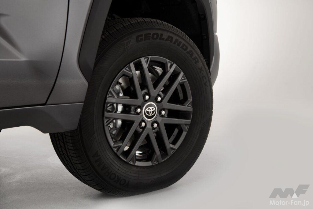 足回りではリーフスプリングを廃止し、マルチリンク式リアサスペンションを採用。これにより、乗り心地や直進安定性、ハンドリング性能の向上はもちろんのこと、牽引性能も旧モデルより向上している。タンドラの最大牽引力は、先代比17.6%増の12,000ポンド(5443kg)になりました。最大積載量も11%以上向上し、1,940ポンド(879kg)になった。
