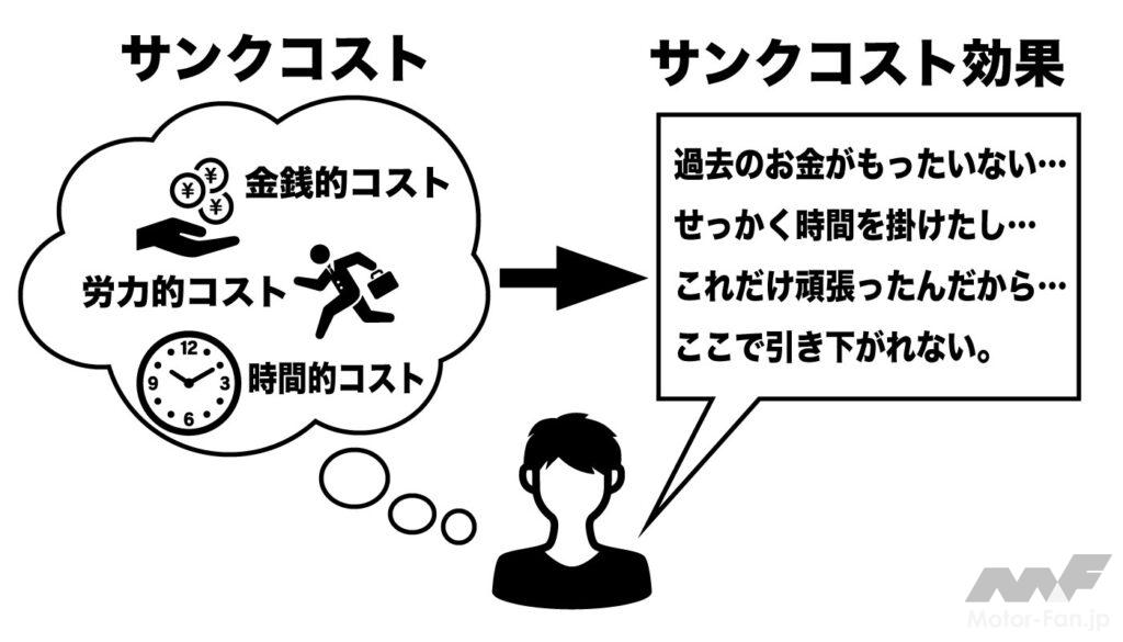 とはいえ、いずれ乗り換えたり、手放したりすることを前提としているのであれば、サンクコスト効果によってそうした判断が遅れてしまうのはカーライフにとってマイナスです。世の中にはサンクコスト効果があって、その影響を受けてしまうケースが少なからずあるということを認識していれば、自分のカーライフにおいても適切な判断ができるといえるかもしれません。