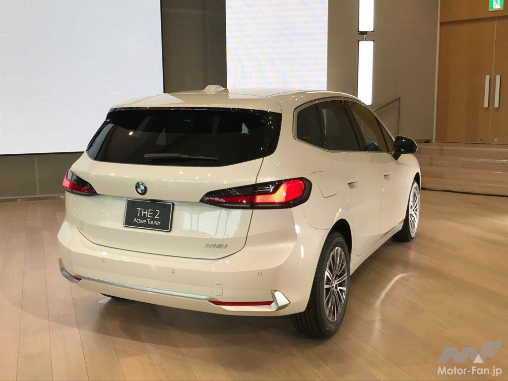 218i ActiveTourer 全長×全幅×全高: 4385mm × 1825mm × 1580mm ホイールベース: 2670mm 車両重量: 1530kg 車両総重量: 1805kg 排気量: 1498cc エンジン: 直列3気筒DOHCターボ 最高出力: 156ps(115kW) /5000rpm 最大トルク: 230Nm/1500-4600rpm WLTC燃料消費率: 14.1km/L ※M Sportの全高は1565mm