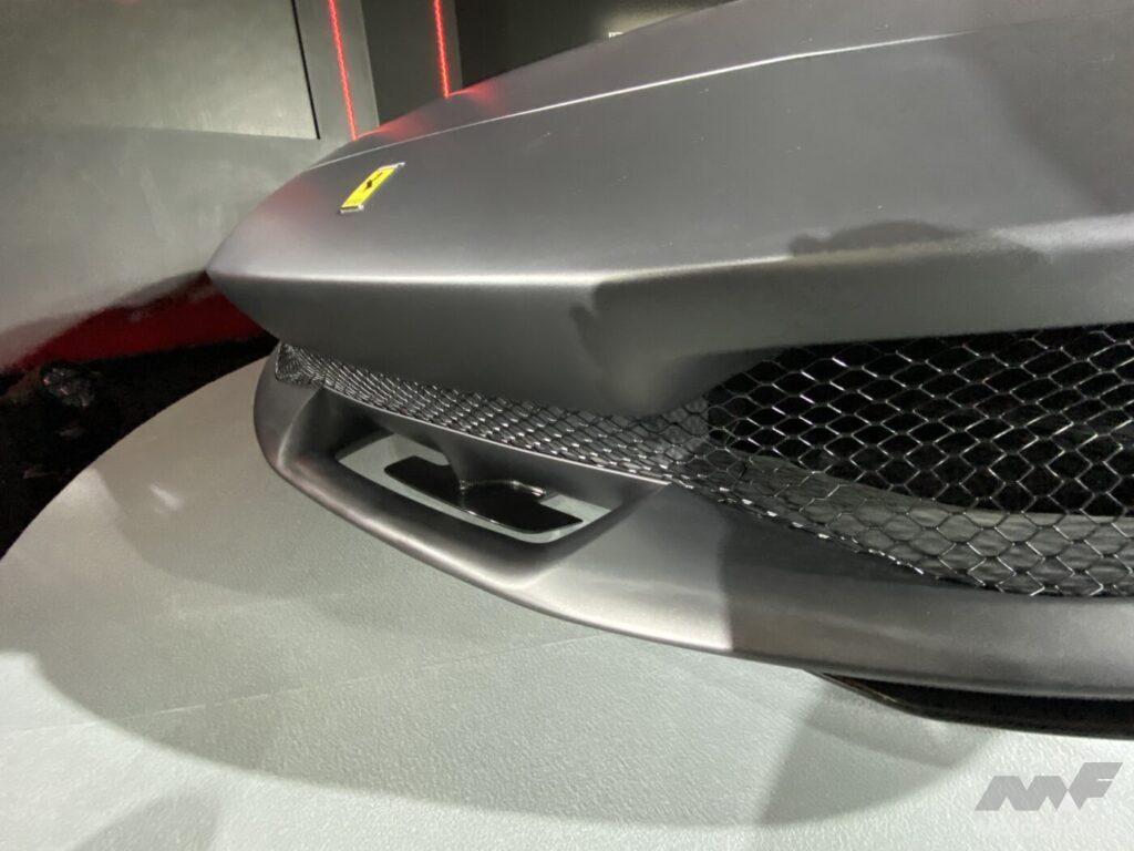 フロントのティートレイもリヤのアクティブ・スポイラーも、フェラーリではないブランドが装着したら、ちょっと不思議なカタチということになってしまうかもしれない。しかし、F1で戦い続けるフェラーリがロードカーに投入してくると、俄然説得力を持つ。これもフェラーリ・マジックなのかもしれないが……。
