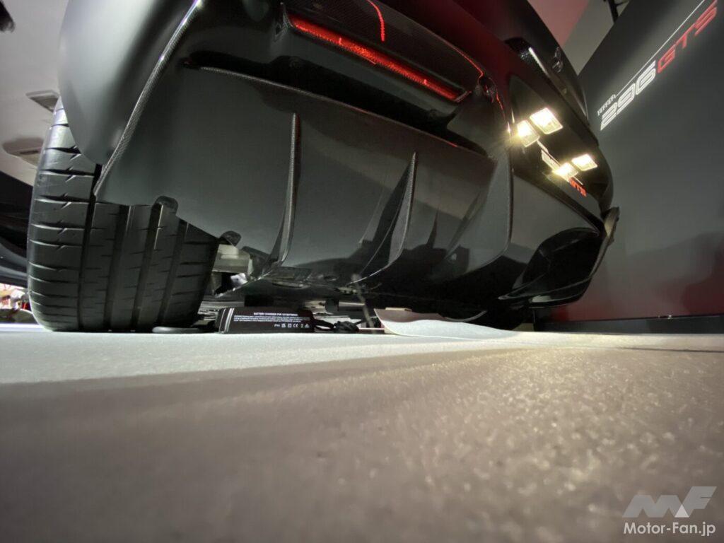 リヤのデュフューザーはすっきりした直線的なデザインになっている。ディフューザー中央の流路が2回曲がっているのが特徴で、これによってアンダーボディを沿って吸い込まれた空気の流れがリヤのディフューザーから吸い出される方向を調整でき、ドラッグも低減できたという。