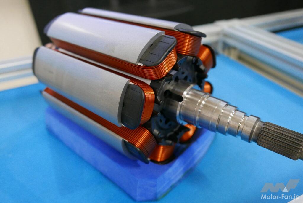 注目は新型エクストレイルのフロントモーターだ。型式は「BM46型」。EM、MMというシリーズではなく、新しい「BM型」というシリーズになる。このBM46型は、やはりIPMモーターで、後述する「巻線界磁式」モーターではない。