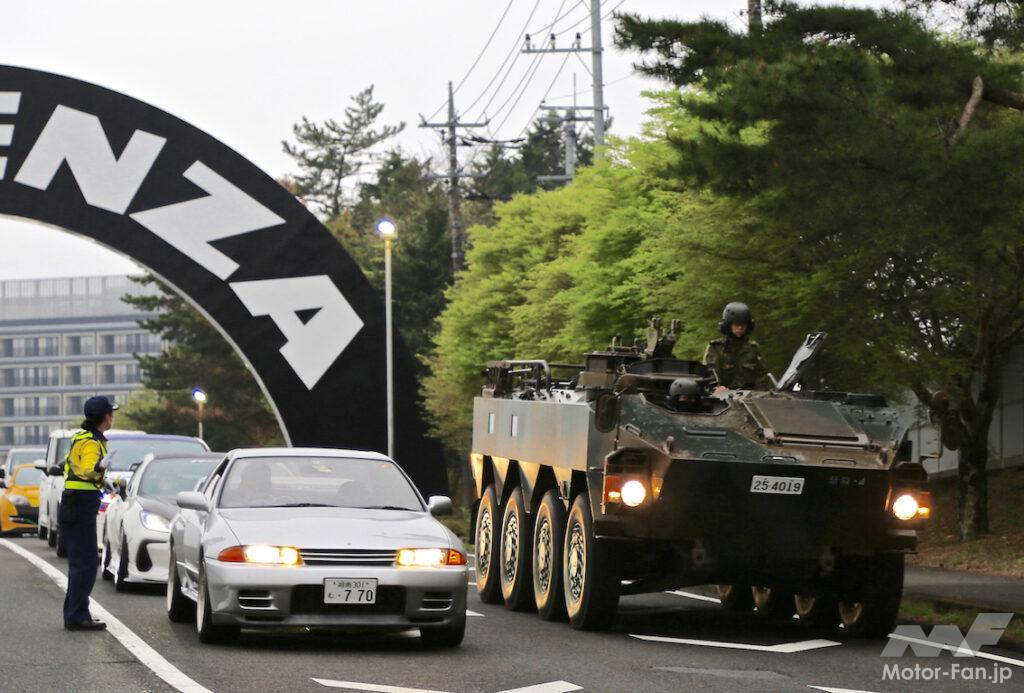 2022年4月24日の早朝、富士スピードウェイ(FSW)西ゲートを通過後、外周路を会場へ向け走る96式装輪装甲車(WAPC)。