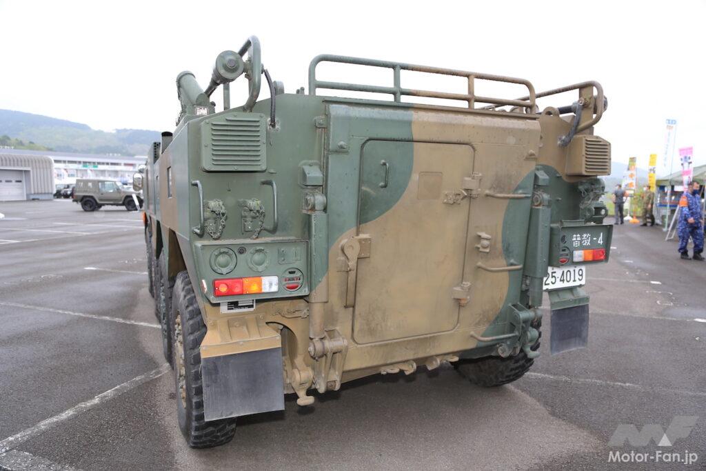 つまり、当然なのだがタイヤ式(装輪)車両は舗装路・一般道の走行に長けていることが、MFFの展示を通じて納得できた。これらの装輪車両や装備は必要な場合、一般道や高速道路などを自走して現場へ急行することができる。これは現在の我が国の国土整備状況や道路網を考えれば当然必要な能力。これが改めて実感できた(もちろん、だから戦車は不要だ、などと言っているわけではありません)。