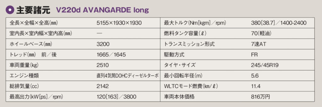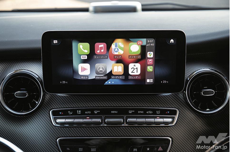 そうした大柄なサイズということもあり、車両重量が全モデルで2.3t超と相当の重量級でもある日本仕様のVクラスに搭載されるのは、2.2ℓのターボ付き4気筒ディーゼルエンジンと7速ステップATという組み合わせ。実は、欧州向けモデルの心臓部は、トランスミッションを9速ステップATへと進化させた上で、搭載エンジンも、排気量をダウンさせながら燃料の最大噴射圧をアップさせるなどした新世代ユニットへとスイッチされているのだが、残念ながら日本向けモデルには、いまだ世代交代は図られていないことになる。
