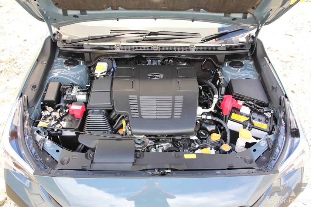 ドライブトレーンは2.0L DOHC直噴エンジン+モーターの「e-BOXER」とリニアトロニックという組み合わせのみ。基本的なドライブトレーンはXVからキャリーオーバーされるが、振動や騒音を低減する改良を施しているという。
