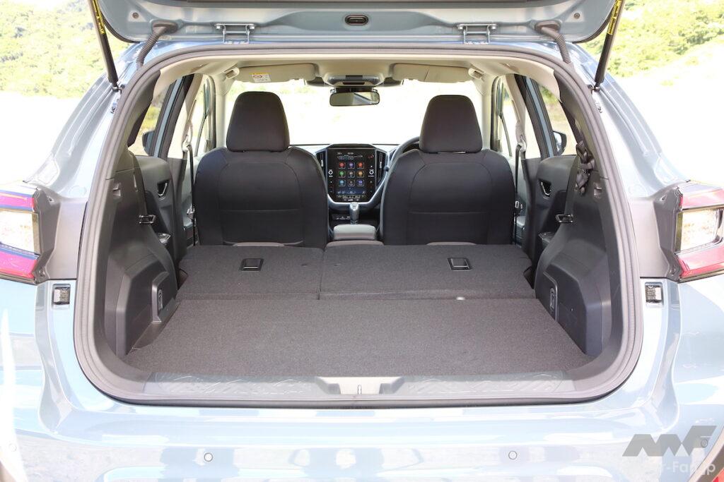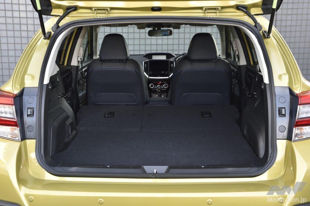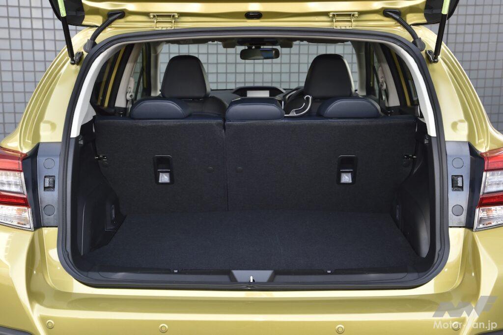 6:4分割可倒式のリヤシートも変更はなく、ラゲッジルームの容量はXVと同等を確保。ただし、リヤウインドウの傾斜角が強くなっているので天地方向の容量に違いがあるかもしれない。