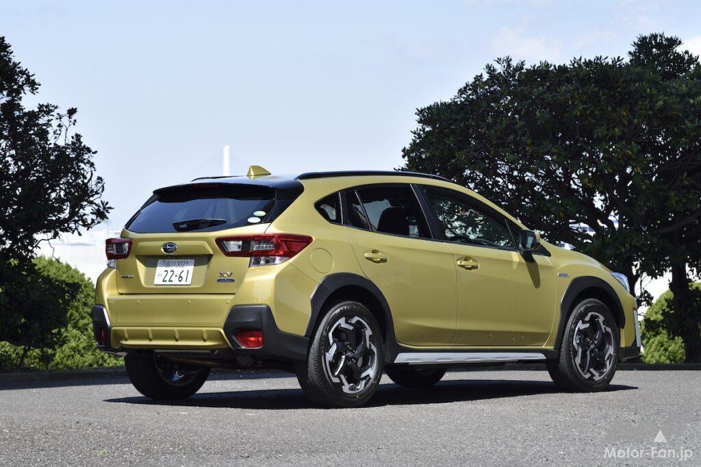 XVでボディ同色だったバンパー下端がクロストレックでは樹脂になっており、フロント同様にアウトドアイメージを強調している。