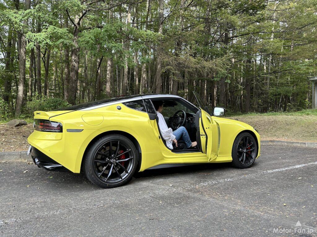 テールにある「Fairlady Z」のレタリングがいい。日産マークを軽く握ると、テールゲートのロックが外れる。で、そのまま上に持ち上げようか……と思ったら、テールゲートのオープニングラインはその上から。