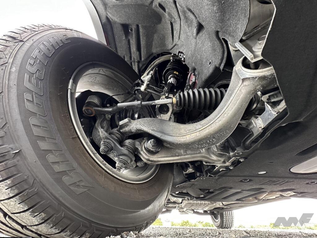 路面からの入力に対して、従来同様に足元がブルッと震えつつ、ボディはゆったりとした波長で外からの入力をかわしてくれる。上下左右に揺れはあるが、2列シートのキャビンを中心として動いていることで、意外にも落ち着いた印象を受ける。