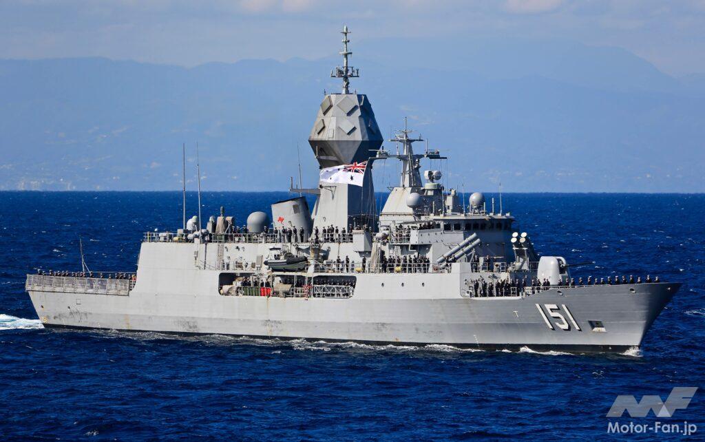 オーストラリア海軍アンザック級フリゲート「アランタ」(FFH-151)。1998年に就役。艦体中央部に塔状構造物を設けCEAFAR多機能レーダーなどのフェイズドアレイ・アンテナを設置した独特のスタイルが目を惹く。