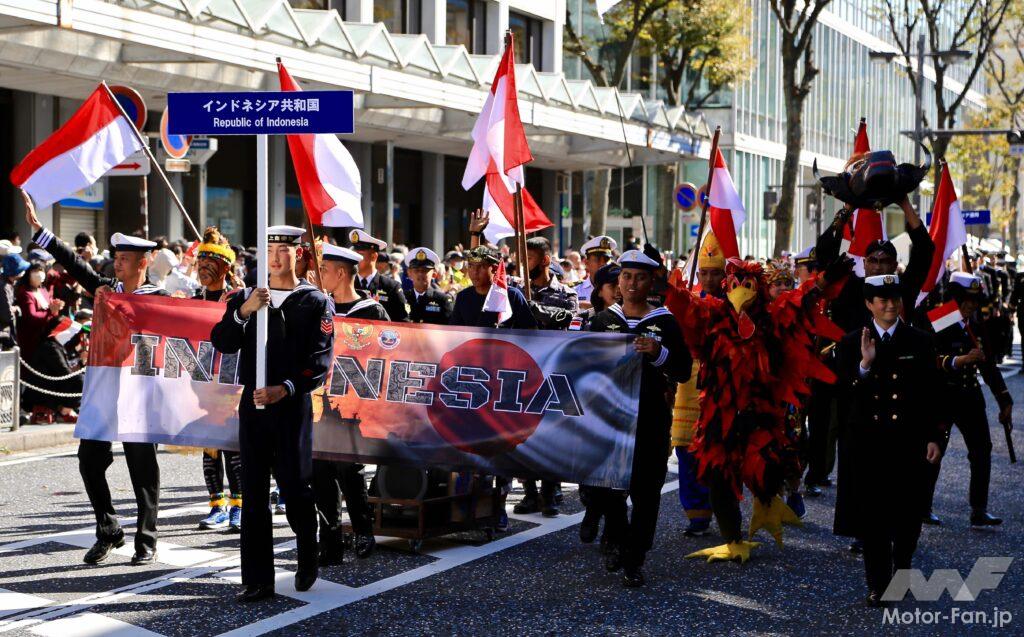 観艦式の関連催事「フリートウィーク」中に横須賀の街中で行なわれた海上自衛隊各音楽隊と各国海軍音楽隊による「よこすかパレード」。インドネシア海軍は制服や民族衣装と思しき衣服、ハロウィンを意識したようなコスチュームを着込んだ隊員たちが賑やかに行進した。