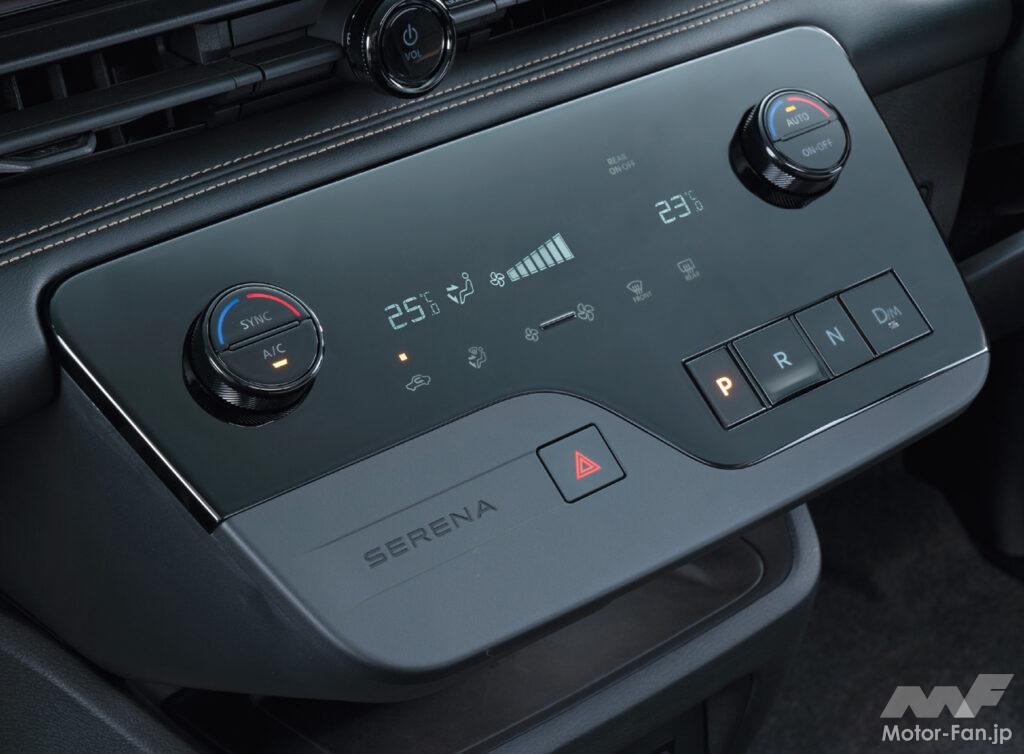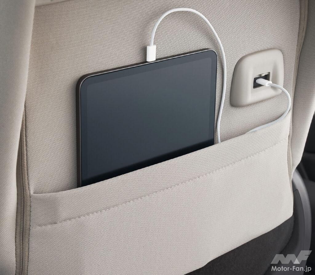 室内には、全席にスマートフォンや財布などを置ける小物置き場を設置。500mlの紙パックが入るカップホルダー、USBの設定、車内Wi-Fiや乗る前エアコンなどにより、快適性や利便性にも配慮された(車内Wi-Fi、乗る前エアコンはNissanConnectサービスの契約が必要)。