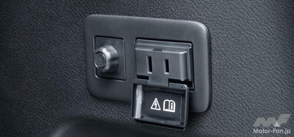 なお、e-POWER車には、100V AC電源(1500W)をオプション装備したことにより、アウトドアにおける家電製品の稼働や、災害時等の非常用電源として使用できる。
