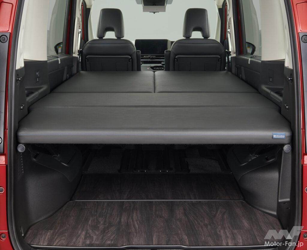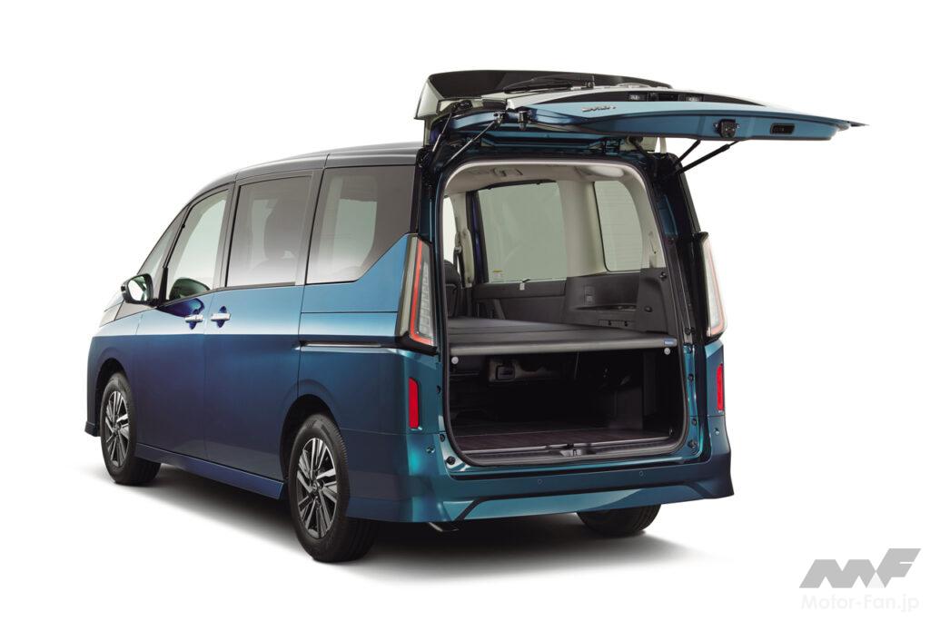 セレナでは3列目シートを取り去った2列シート仕様とし、収納式のベッドシステムを備えることで、高い実用性と快適な休憩のためのスペースを同時に提供する。ベース車ではオプションとなる防水シートを標準装備しているほか、ベッドマットにはシートと同じ防水性のある素材を採用。また今回、e-POWER車の定員が1名増えて5人乗り(※)となったことに加え、ベッドマットの厚みを増し、より快適な就寝を可能としている。「XV」、「ハイウェイスターV」、「e-POWER XV」、「e-POWER ハイウェイスターV」グレードのほか、カスタムカー「AUTECH」がベース車としてラインナップされた。