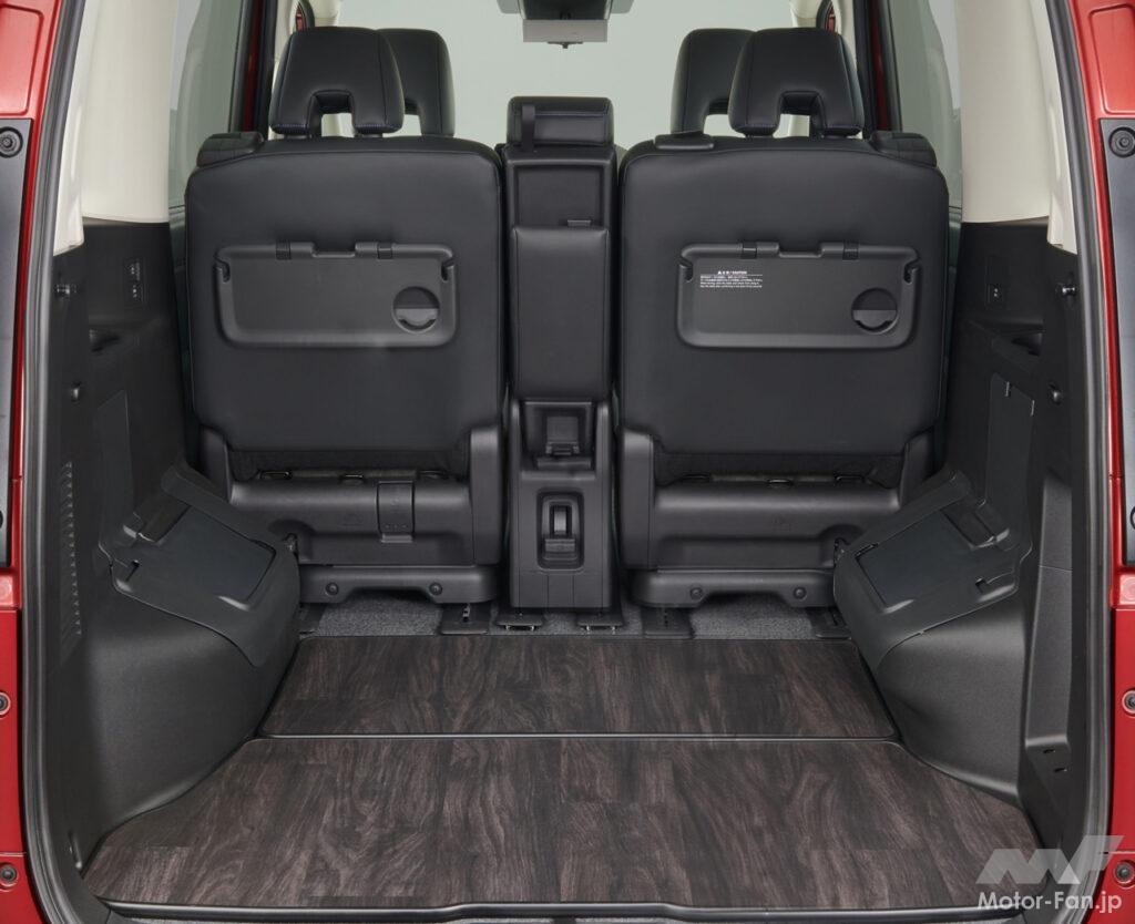 ミニバンとしての使い勝手も磨きがかかった。運転席の足の通過スペースを先代モデルから120㎜拡大し、運転席と助手席の間の移動がよりしやすくなった。また、シートスライド機構を3列目にも標準装備したことで、8人フル乗車でもゆったりとした座り心地を実現している。