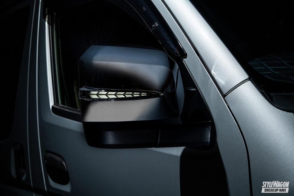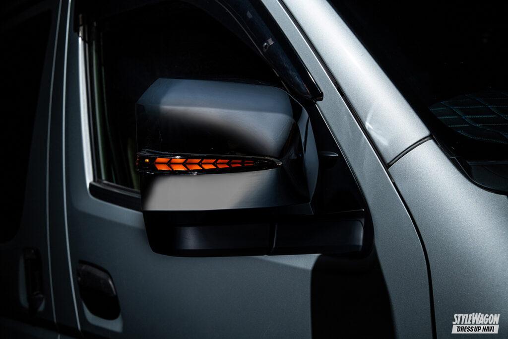 純正では搭載されていないドアミラーウインカーは、小さなワンポイントであったとしても、あるとないとでその差は雲泥。しかもそのウインカーの光がロック/アンロックに連動して踊り出すとあればアピール度も満点、周囲の視線をクギヅケられること確実だ。
