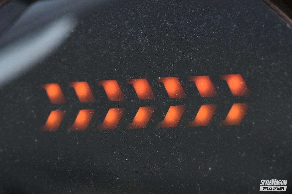 そんな魅力あふれるアイテムがシルクブレイズのドアミラーウインカー&カバー。最大の見せ場となるのがオープニング&エンディングアクションで、アンロック時にはまずオレンジの点滅から始まり、白い光が流れながら次々に点灯するというアクションが発動。ロック時にはそれと逆のアクションが起こるため、乗り込む際も車両から離れる際も優越感が満点だ。