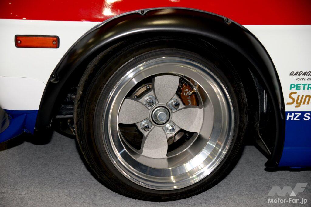 ボディの前後にはオーバーフェンダーが装着され、ワイドなB.R.Eアルミホイールをセットしている。これらボディパーツについてはスタイルキングのキットを装着してあり、もはや定番スタイルともいえる。サニートラックは1989年のマイナーチェンジでフロントブレーキにディスクを採用している。そのためキャリパーを社外品に交換しても構造変更にはならないため、足回りのチューニングについての自由度が高い。