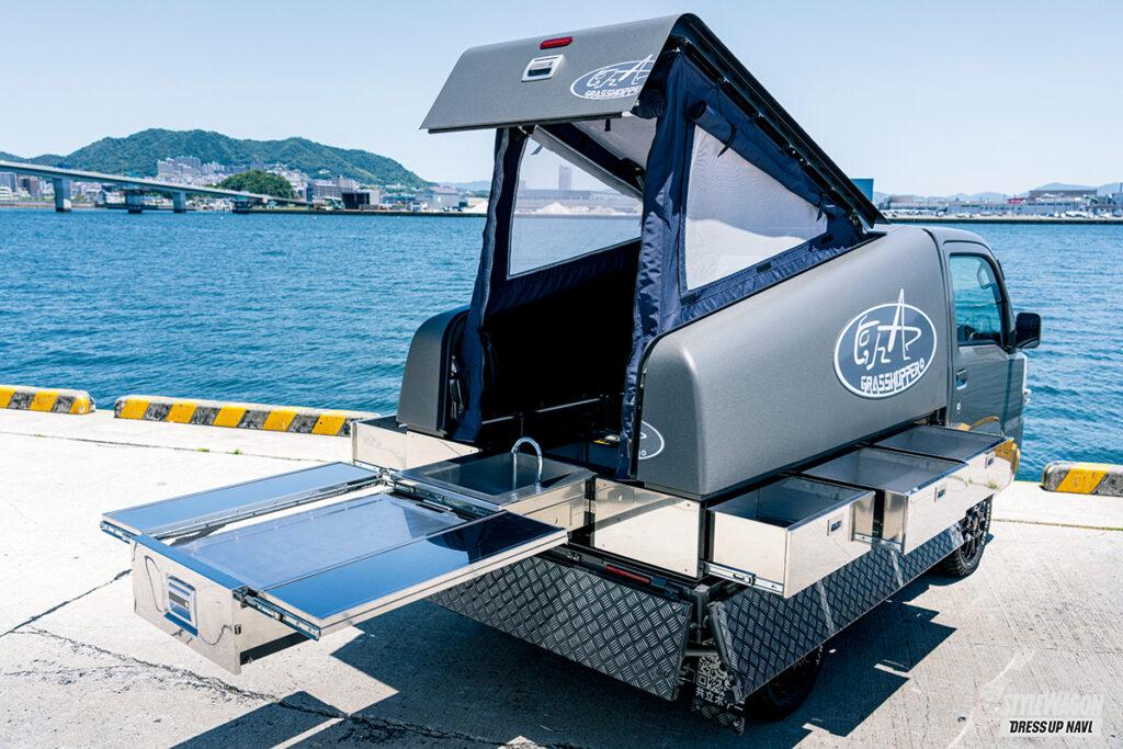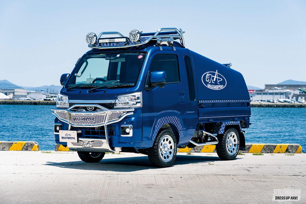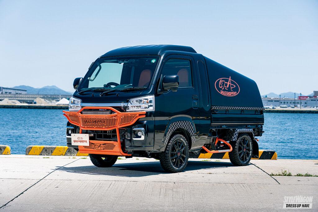 軽トラのマルチパフォーマー。そんな言葉がピタリとくるハイゼットの新たなカスタムカーが共立工業の手掛けるグラスホッパーだ。