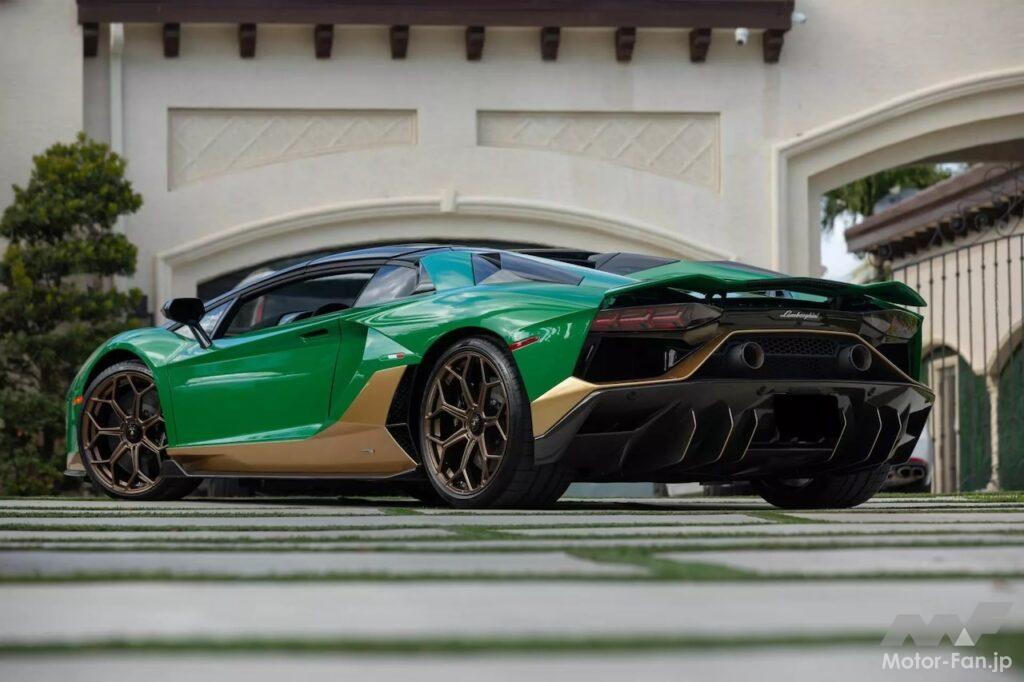 ウルティマエは、「ロードスター」250台、「クーペ」350台の合計600台が限定生産されたが、伝説の「ミウラ」にインスパイアされた、ベルデメタリックとゴールドのペイントスキームを備えているのはわずか2台という超レアモデルで、今回はその1台がオークションに登場する。