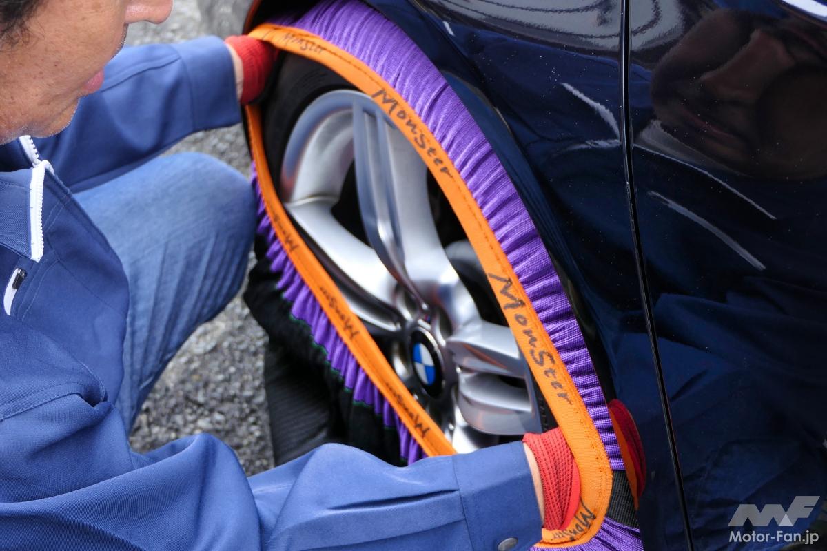 ジャッキアップせずに1本3分で装着できる!? コンパクトに収納できる布製チェーンは用意しておいて損は無い!? スポーツカーにもオススメ