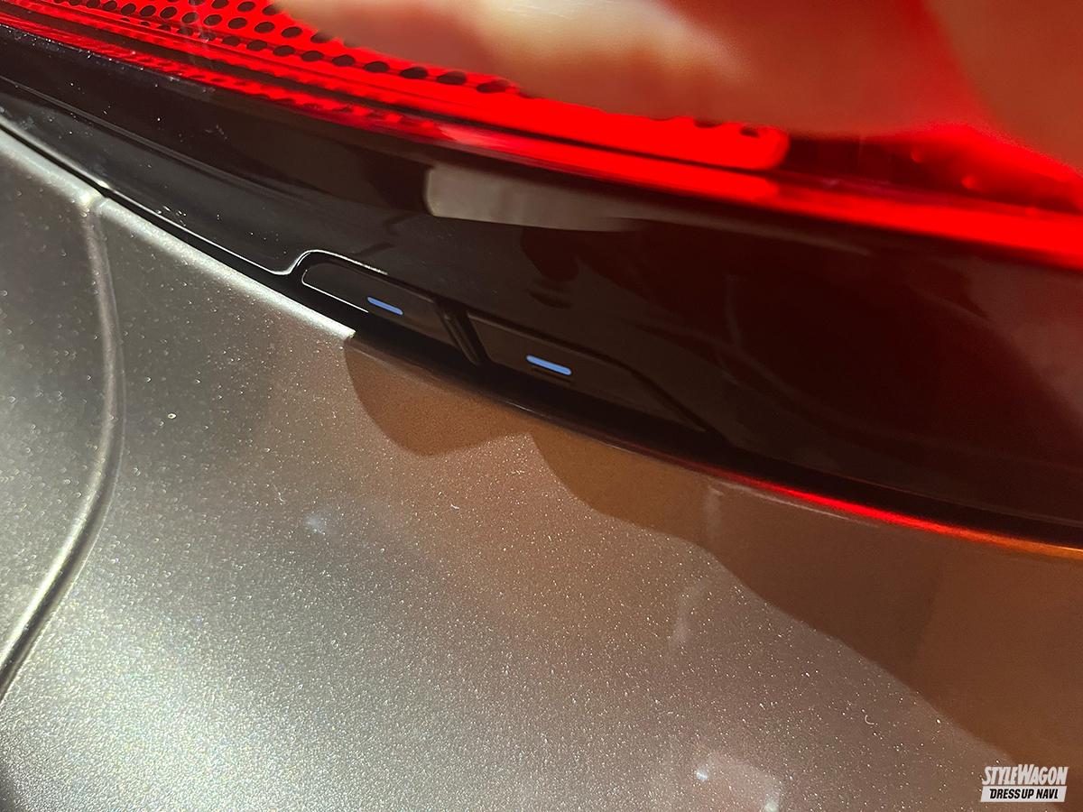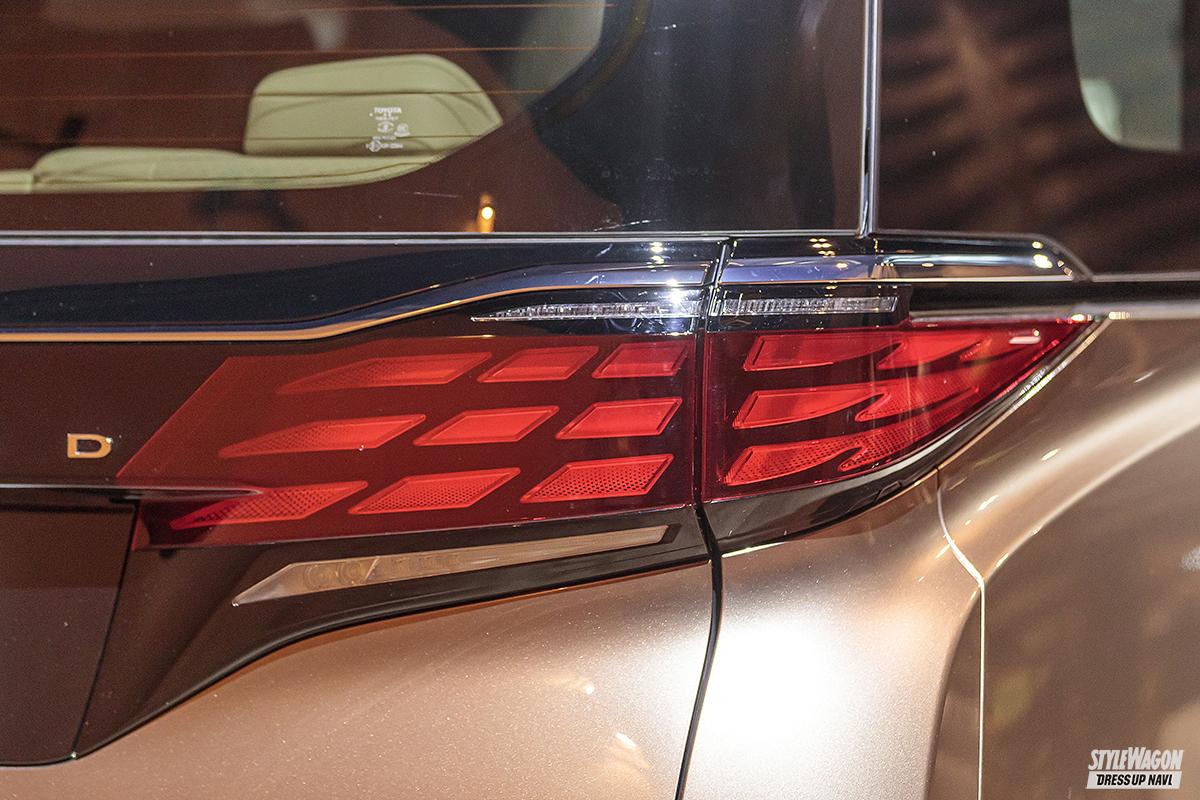 リアビューを印象づけているのはコンビランプで、こちらも精緻な作り込みと先進性を感じさせる仕上がりだ。細部を極限まで詰めることで、単なる箱型に見えない工夫が凝らされている。ボディサイドの凹凸を+20㎜となる44㎜までミリ単位で増やすことで、抑揚の効いたシルエットを実現している。