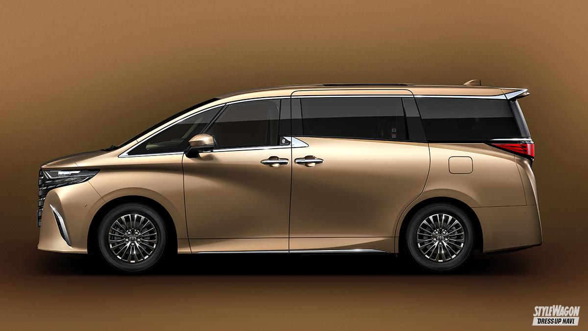 先代からすでにミニバンという枠を超えた高級車像を打ち立てていたアルファードは、フロントオーバーハングが45㎜伸びた以外、ディメンションを踏襲。日本国内でストレスなく取り回しができるサイズを踏襲しつつ、高級ホテルのエントランスに今まで以上に映えるような上質感、先進性を付与している。