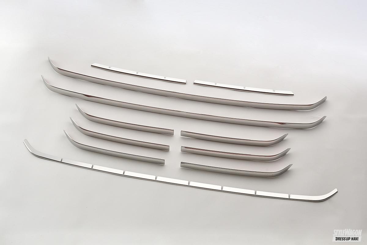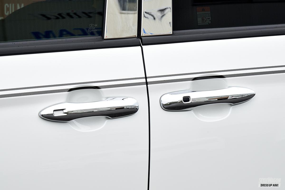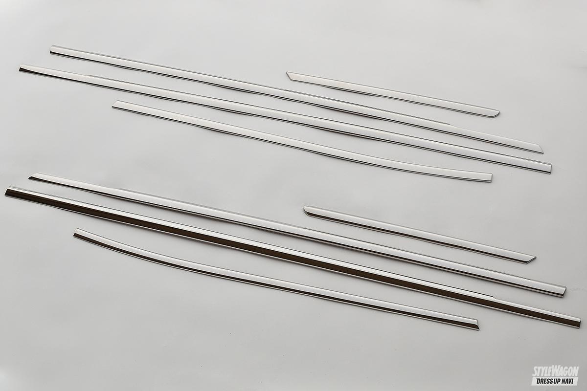 ラインアップは多彩で、各パーツには高品質ステンレスを使用。鏡面仕上げの美しい質感は、純正メッキパートとの相性も抜群。スポット的に取り入れるのも良し、好きなパートだけを組み合わせるのも良しと、思い通りのスタイリングが手に入れられる。製品に付属する両面テープを貼るだけで、簡単に愛車にインストールが可能となっている点も嬉しい。また、今回の装着車両のように、一部パーツを除き、シルクブレイズエアロと組み合わせることもできるから、自分だけのアレンジを楽しめるのだ。気になる発売時期は8月頃を予定。インテリアアイテムも同月にリリースされるとのことだ。